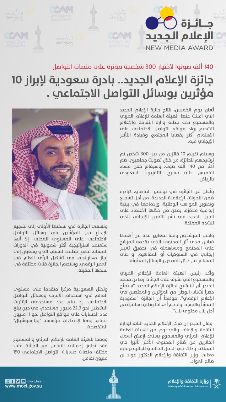 شخصية مؤثرة على مواقع التواصل وإعلامية سعودية يوجد عبر مواقع التواصل الاجتماعي العديد من المشاهير والذي يؤثرون بشكل كبير في الساحة الاعلامية الا انه يوجد شخصية تكون اكثر تأثير في العالم العربي وفي المملكة العربية. دائما السعودية تفاجئنا بشخصيات لا مثيل لها شخصيات اثرت في التاريخ السعودي بل اثرت في تاريخ العالم اجمعه في هذه المقال سوف نتناول شخصيات قيادية سعودية استطاعت ان تحفر اسمائها في العالم ومن هذه الشخصيات غازي القصيبي. 140 ألف صوتوا لاختيار 300 شخصية مؤثرة على منصات التواصل جائزة الإعلام الجديد. اجابة سؤال شخصية مؤثرة على مواقع التواصل وإعلامية سعودية سوف نتعرف على اسم الشخصية في الاسفل من اجل ان تكون الصورة واضحة بشان شخصية مؤثرة على مواقع التواصل وإعلامية سعودية التي يجب ان يتمكن الشخص من معرفة الاجابة.
