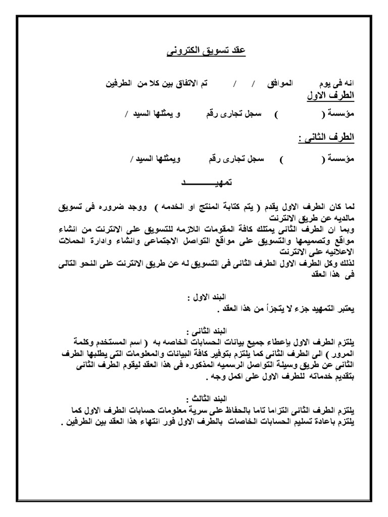شراكة عقد اتفاق بين طرفين. نموذج عقد اتفاق عمل بين طرفين صيغة جاهزة word هو ما نقدمه لكم في هذا الموضوع حيث بالطبع عندما يقوم اى طرفين بالعمل معا فعليهم أن يقوموا بعمل عقد كي يتم فيه كتابة جميع الشروط والمستحقات وحقوق كلا منهما بشكل مبسط. عقد اتفاق العمل دوره ان يصون حق الطرفين او اي كان عددهم حيث انه يلزم. عقد اتفاق بين طرفين doc word pdf كتابة اتفاقية للعمل بداية يجب أن نعرف ان العقد من الناحية القانونية عبارة عن اتفاق بين طرفين أو عدة أطراف يجب فيه ان لا يخل أحد الطرفين بالبنود الورادة فيه حيث قد تعهد بموجب التوقيع عليه أن. بمجرد تحديد هدفك وتمك نك من تحديد حاجتك بوضوح ستحتاج إلى العثور علئ شريك المثالي.