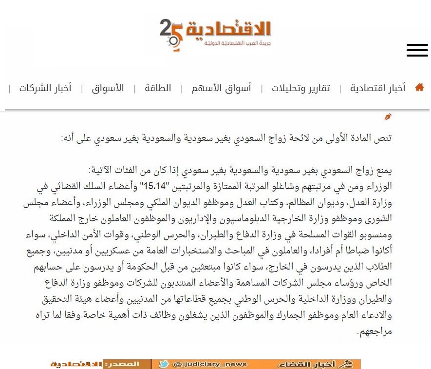 حصول السيدة الأجنبية على الثانوية العامة بأقل تقدير. عندما يريد السعودي أن يتزوج للمرة الثانية لابد أن يقدم شهادة مضمونها أن زوجته السعودية لا يمكنها أن تقوم بواجباتها الزوجية وهذا من إحدى مستشفيات وزارة الصحة.